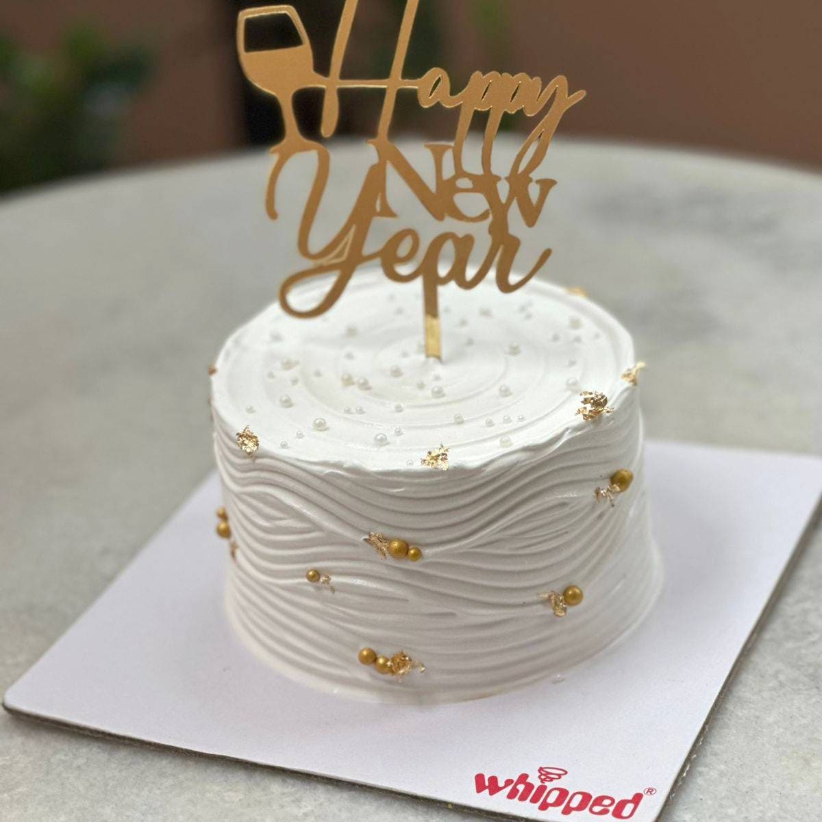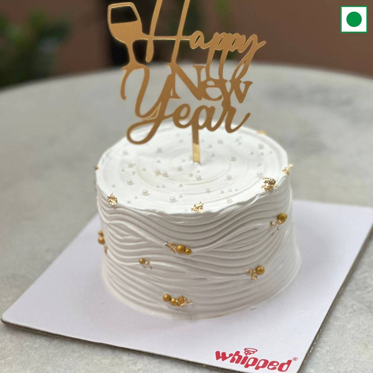 A pure white cake featuring shimmering pearls and gold leaf details, representing the brilliance of new beginnings.
