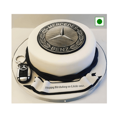 "Celebrate in style with this exquisite cake, featuring the iconic Mercedes-Benz logo, a perfect blend of elegance and luxury."