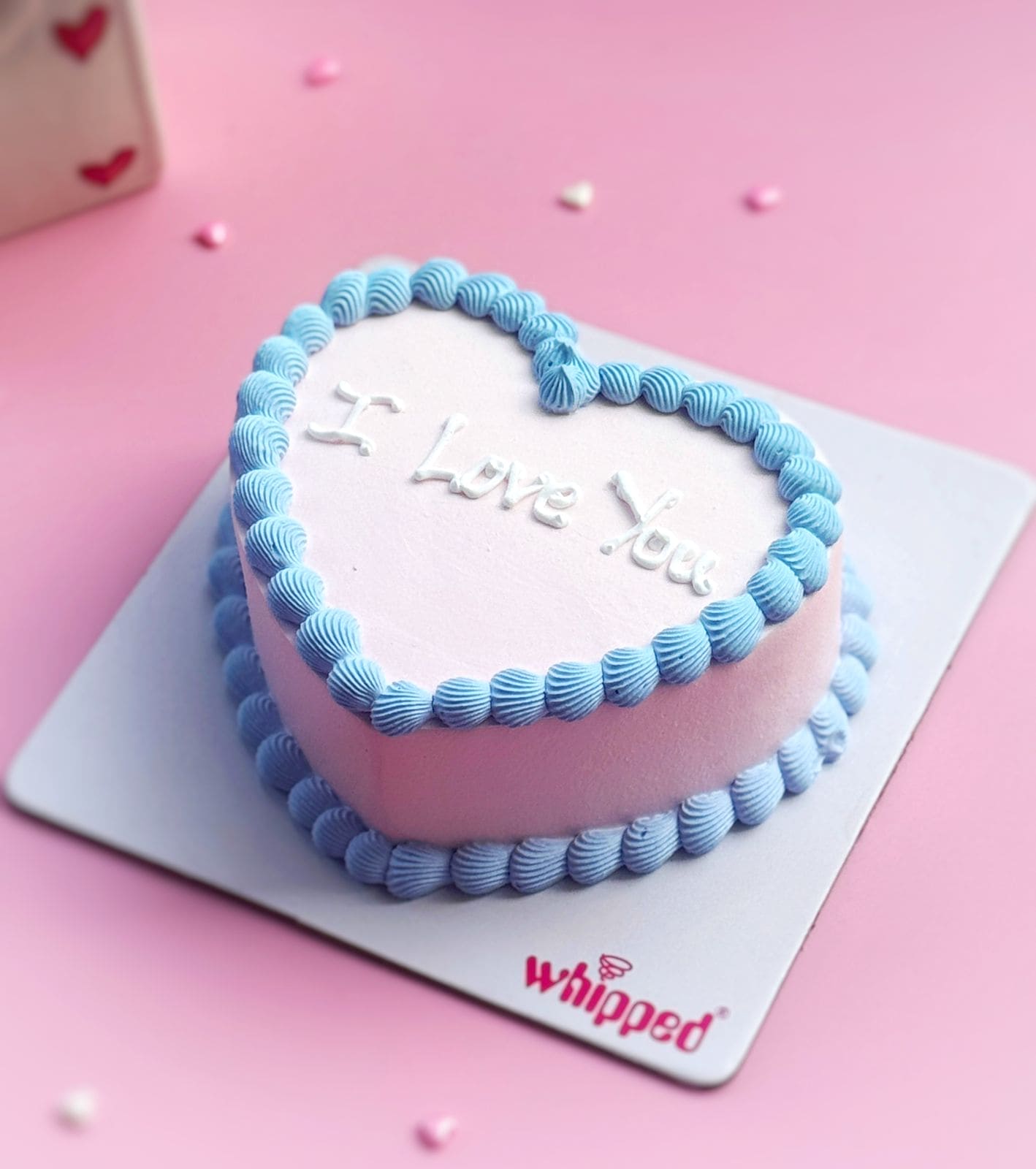A dreamy, lavender-pink sponge embraced by delicate cornflower blue ruffles. This elegant heart-shaped confection is a whimsical tribute to love, whispering sweetness in every silky, cream-filled bite.